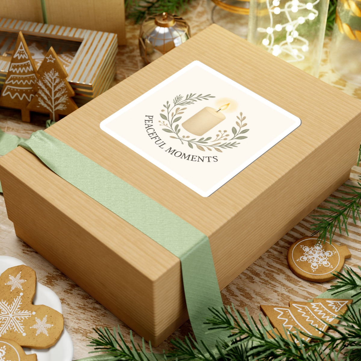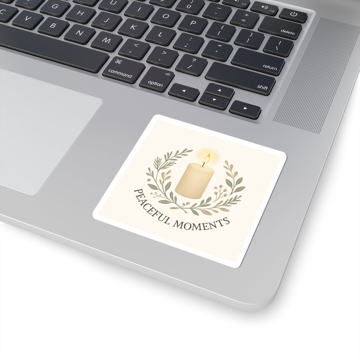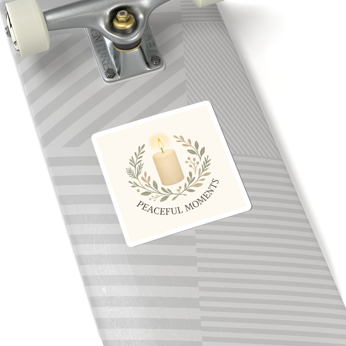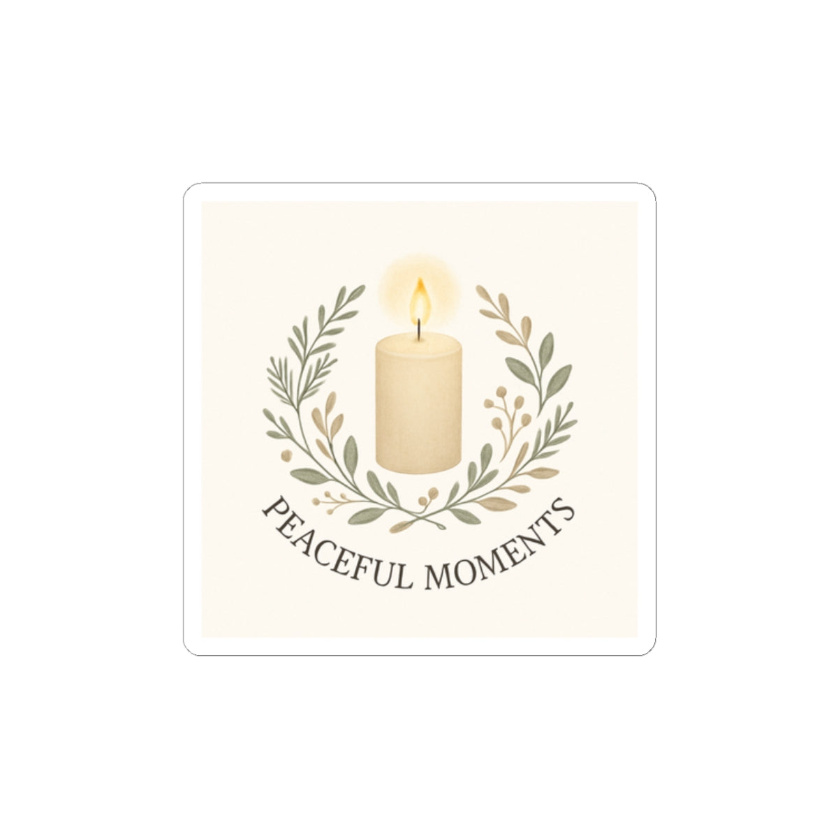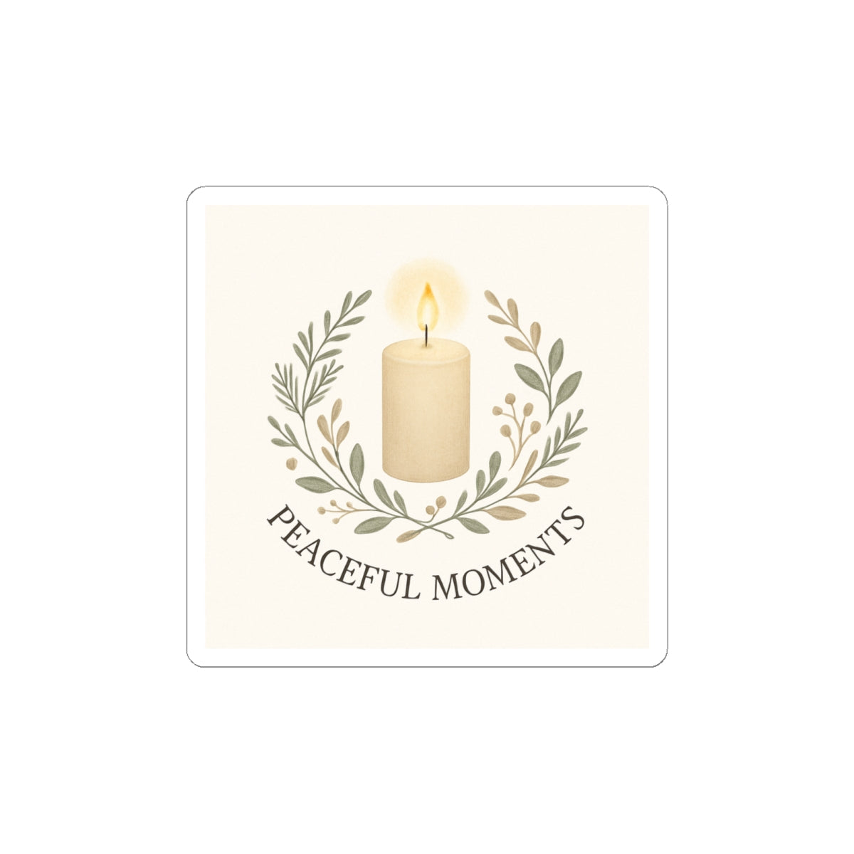Soft, muted tones and a gentle candle illustration invite a quiet pause whenever you see it. This glossy kiss-cut sticker features a warm ivory candle framed by delicate olive branches and the words “Peaceful Moments” beneath — a small emblem that brings calm to everyday surfaces. Stick it on a laptop, journal, or window to create a little pocket of serenity in a busy day. The smooth, scratch-resistant finish catches light in a subtle way and the compact square shape blends into both minimalist and cozy aesthetics.