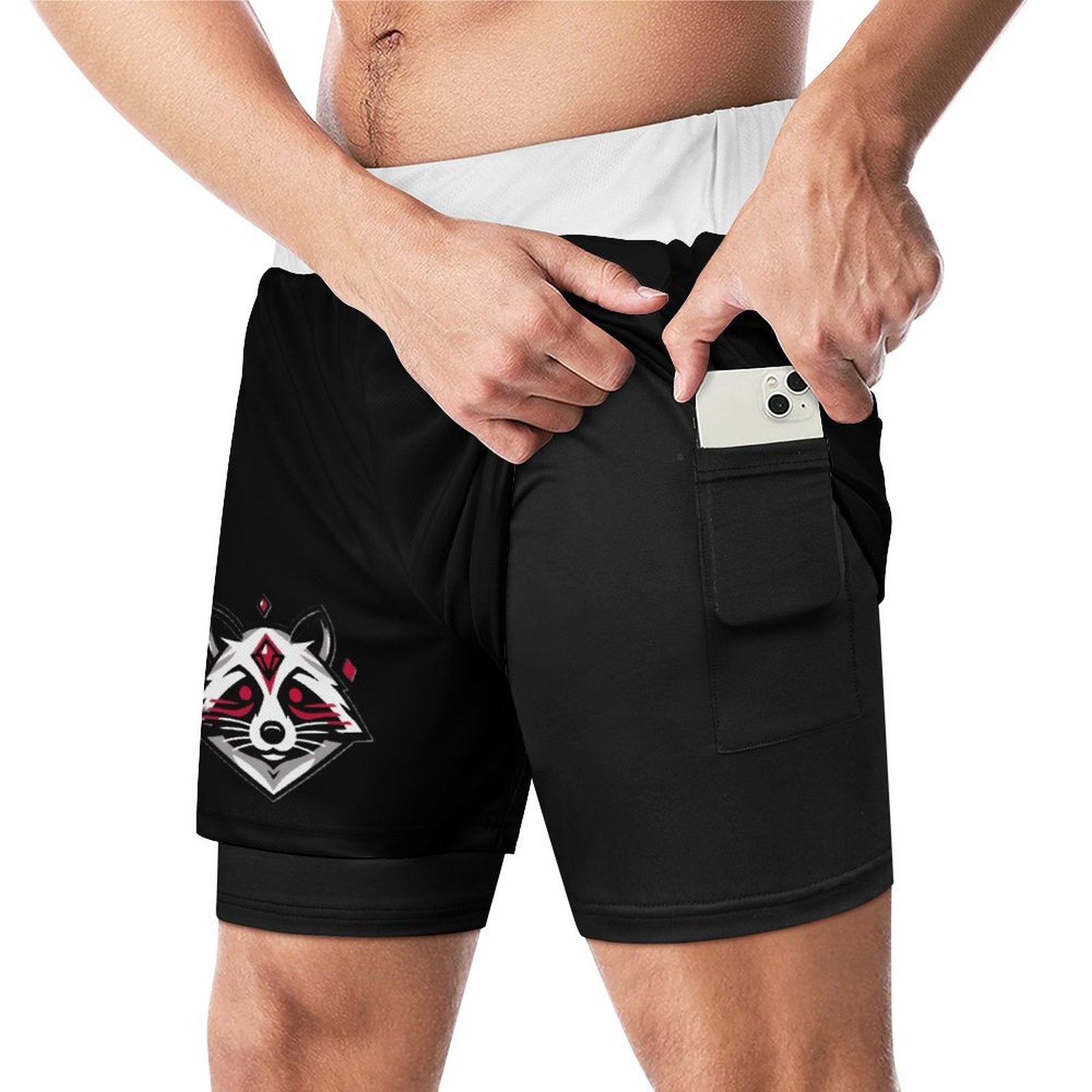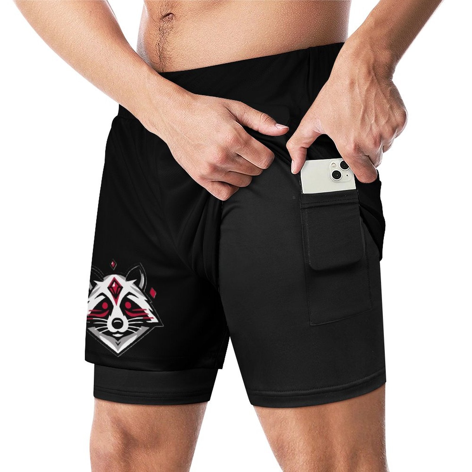 Ruby Raccoon -Logo Men Beach Shorts with 4 Pockets